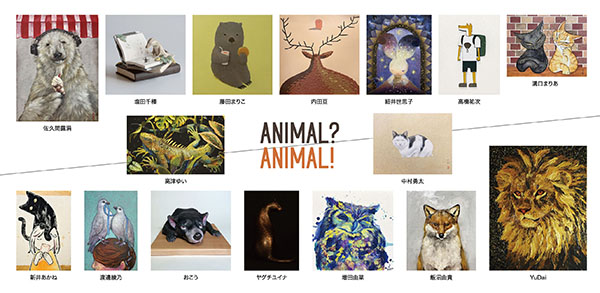 ★ANIMAL? ANIMAL!  気鋭の作家16人が、A.実在する動物 B.擬人化された動物、2種類の作品を描く展示です。 普段は動物をリアルに描写する作家、その反対に寓話的な動物を描く作家が、普段は描かない動物像にチャレンジするのが見どころです。 日本画、洋画、彫刻、工芸、さまざまな技法で表現されたANIMAL?ANIMAL!な作品を是非お楽しみください。 ■出品作家 新井あかね / 飯沼由貴 / 内田亘 / おこう / 佐久間露涓 / 塩田千種 / 高津ゆい / 高橋祐次 中村勇太 / 藤田まりこ / 細井世思子 / 増田由菜 / 溝口まりあ / MIWAEL / ヤグチユイナ / YuDai / 渡邊綾乃 ..................................................................................................................