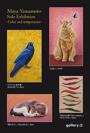 ★山本真矢個展-色彩と温度- ![]() 油彩ならではの深みある色彩表現で、いきものたちの豊かな表情や、その一瞬に宿る気配や生命感を閉じ込める ことをテーマに、日々制作をしている山本真矢氏。 名古屋では初の本個展では、彼女のメインモチーフである様々な美しいいきものを中心に展示いたします。 独学ながらも確かな技術力で、モチーフの表面にとどまらず、そのものがもつ温度や空気感までも描き出した 油彩作品の数々を、ぜひご覧ください。 PROFILE 1993年 北海道生まれ 学習院女子大学国際文化交流学部国際コミュニケーション学科 卒業 2022年 いい芽ふくら芽inSapporo 入選(大丸札幌店) 2023年 美術新人賞 デビュー2023入選 2024年 白日会入選(以降’25) ..................................................................................................................