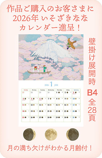 ★いそざき なな カレンダー原画展 “12ヶ月の舟旅” ![]() ![]() いそざきなな初のカレンダー原画展です。舟に揺られながら季節をめぐる十二の景色。 移ろう光や風を映しとるように描かれた穏やかな旅の情景を、どうぞ心ゆくまでご堪能ください。 ■磯崎なな 1993年 東京生まれ 2016年 東京藝術大学美術学部絵画科日本画専攻卒業 2017年 見参八犬堂賞受賞 2020年 個展(伊勢丹浦和店)他多数 2021年 個展(八犬堂/以後毎年)倉阪鬼一郎著『お江戸甘味処 谷中はつねや』(幻冬舎)シリーズ、等 装丁画多数。 10月18日(土)正午からkonoyo.netにて予約申込みをスタート。 申し込み締め切りは翌朝10時まで。 事前に複数お申込みのあった作品のみ抽選とさせていただきます。 ※お申し込みのなかった作品は会期初日11時より通常販売いたします。 ※WEBでは会期中PM8時〜AM10時までkonoyo.netでも販売します。 ..................................................................................................................