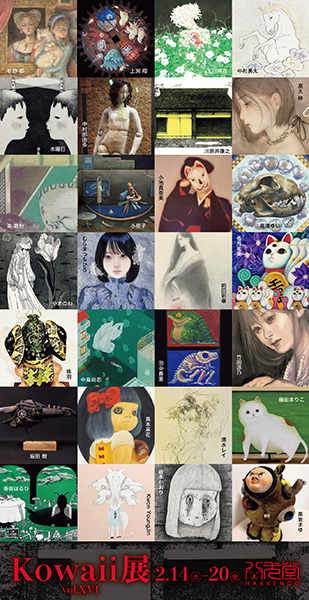 ★Kowaii展 vol.XVI ![]() ![]() 2011年より開催しております「怖い+α」な作品がずらりと並ぶKOWAII展。 八犬堂ギャラリーでは初の開催となります。ぜひお越しください。 ■ARTISTS 岩本かおり / 上渕 翔 / 楽 嘉怡 / 香月祐美 / 川原井康之 / Kwon YoungJin /黒岩まゆ / 小池真奈美 香坂はるひ /坂田 樹 / 小夜子 / 清水レイ / 珠羽 / 杉野 郁 / 久 梓 / 高津ゆい / 竹田涼乃 田中香里 / 玉川麻衣 / 鳥本采花 /中島尚志 / 中村那由多 / 中村勇太 / 藤田まりこ / 細川成美 前田彩華 /むらまつちひろ / 木曜日 / やまのわ (五十音順) 2月13日(金)正午からkonoyo.netにて予約申込みをスタート。 申し込み締め切りは翌朝10時まで。 事前に複数お申込みのあった作品のみ抽選とさせていただきます。 ※お申し込みのなかった作品は会期初日11時より通常販売いたします。 ※WEBでは会期中PM8時〜AM10時までkonoyo.netでも販売します。 ..................................................................................................................