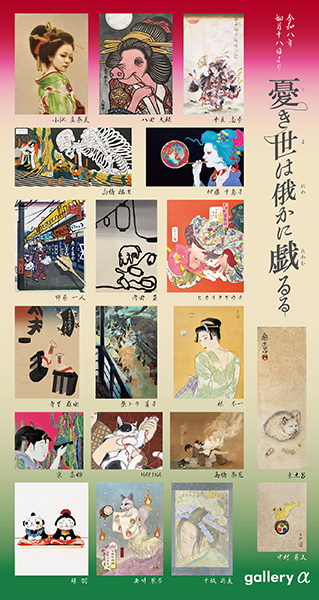 ★憂き世は俄かに戯るる ![]() 儚くままならぬ「憂き世」を「浮世」と呼びかえ、洒落や風刺、祭りで憂さを晴らした江戸人の遊び心は、 浮世絵や風俗画に結実し、写楽、北斎、広重らの表現にも息づいています。本展では、現代の作家たちが その粋と戯れの精神に呼応し、それぞれの解釈で 「憂き世」を描き出します。浮世絵のオマージュから 吉原の情景まで、多彩な作品を通じて江戸の息づかいを感じていただければ幸いです。 ■ARTISTS 伊藤千恵子 / 内田 亘 / 桑土呂 / 楽 嘉怡 / 小池真奈美 / 柴トラ夏子 / 珠羽 / 平良志季 橋奈見 / 高橋祐次 / 千坂尚義 / 寺下麻由 / 中村勇太 / 西川果歩 / 野原一人 / 林 和輝 林 不一 / ヒカリタケウチ / MARINA / 八田大輔 (五十音順) ..................................................................................................................